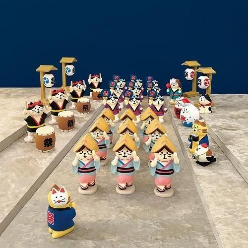 早期予約特典の10%オフでとってもお得!定価7854円のセットが7068円でのご案内です♪更に雑貨orミニチュア小物etc等をランダムプレゼント☆300円〜500円相当のプレゼントです!お得でスペシャルなコンプリートセットです。 concombreお祭りにゃんこ。踊るにゃんこに見るにゃんこ。おなじ猫なら踊らにゃそんそん!